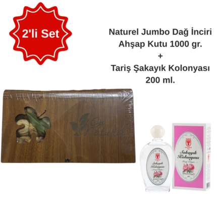 2 ‘li Set Naturel Jumbo Dağ İnciri Ahşap Kutu 1000 gr. + Tariş Şakayık Kolonyası 200 ml.