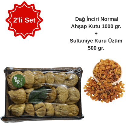 2 ‘li Set Dağ İnciri Normal Ahşap Kutu 1000 gr. + Sultaniye Kuru Üzüm 500 gr.