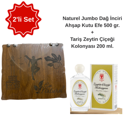 2 ‘li Set Naturel Jumbo Dağ İnciri Ahşap Kutu Efe 500 gr. + Tariş Zeytin Çiçeği Kolonyası 200 ml.